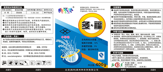 北農(nóng)(海利)涿州種衣劑有限公司是由中國農(nóng)業(yè)大學與湖南海利化工股份有限公司于19984月合資成立的有限責任公司。公司主要從事懸浮種衣劑、干粉種衣劑、懸浮劑、可濕性粉劑、水乳劑等農(nóng)藥的研發(fā)、生產(chǎn)和銷售。